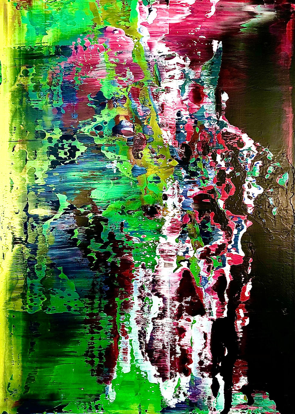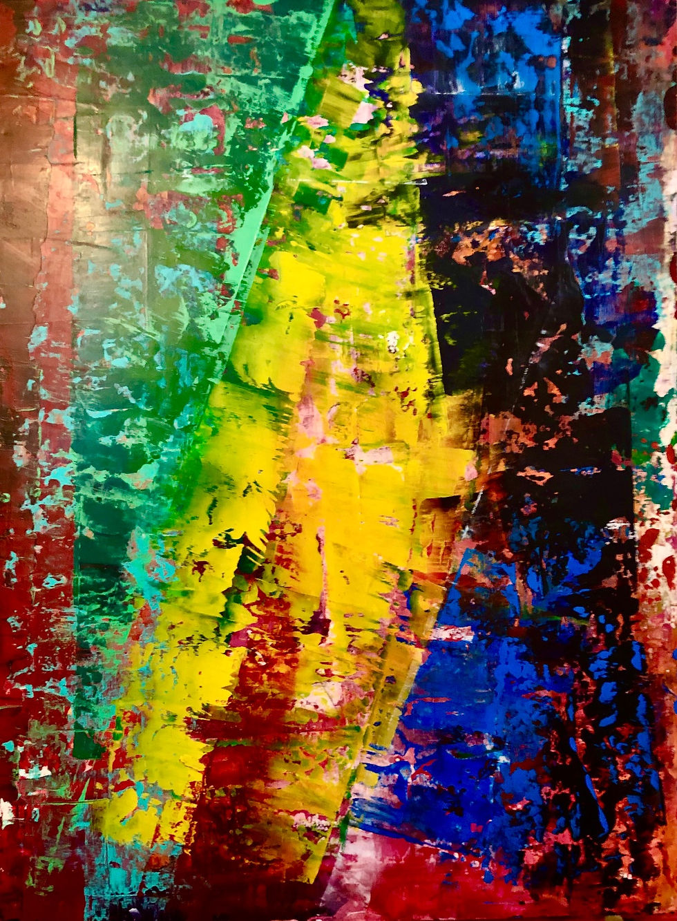 Ich spiele mit Farben und Formen bis sich daraus eine Komposition ergibt, die das Auge erfreut. Meine Farbspiele in ihrer Kreativität, Sensibilität und Entschlossenheit finden so ihre ganz eigene Gestaltung. Bei längerem Betrachten der Bilder beginnt die Fantasie mitzuspielen, es bilden sich Andeutungen heraus, die Konkretes erahnen lassen.